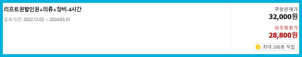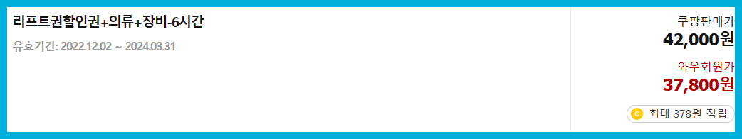 쿠팡 할인을 이용한 곤지암 패키지 금액 알아보기