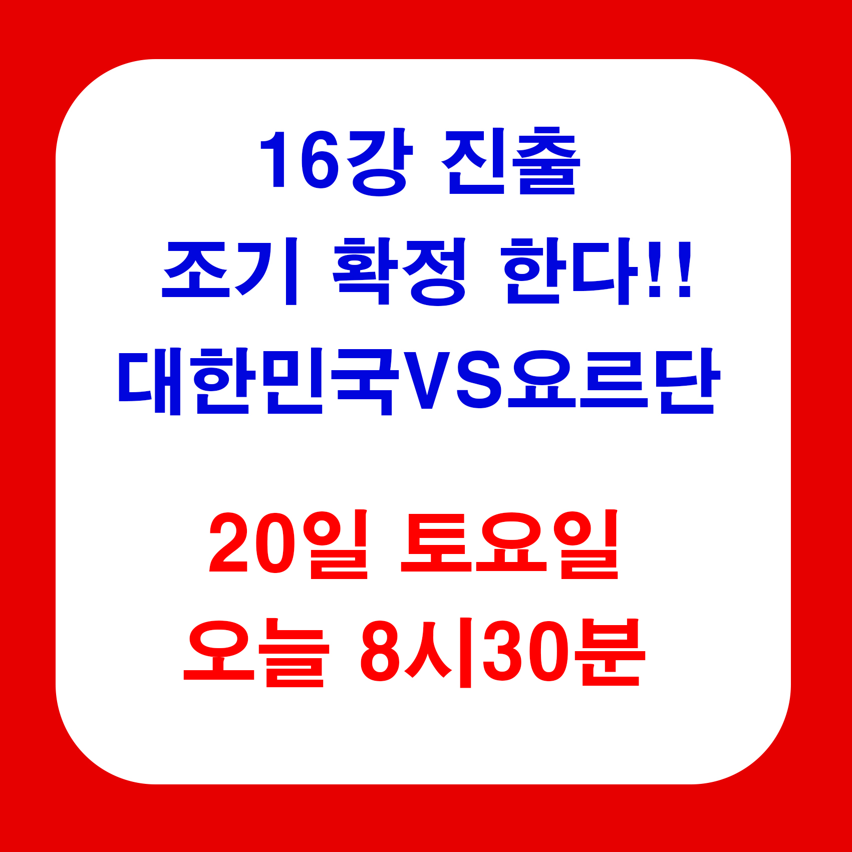 아시안컵 본선 2차전 대한민국 VS요르단 경기가 오늘 20일 토요일 8시 30분 치러집니다.