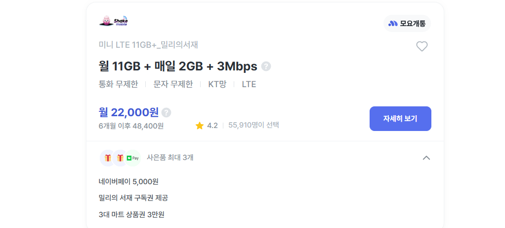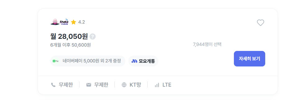 *알뜰요금제는 할인 유무 기간을 꼭 확인하셔야 합니다.[6개월 이후 금액이 올라가는 문구가 보입니다]