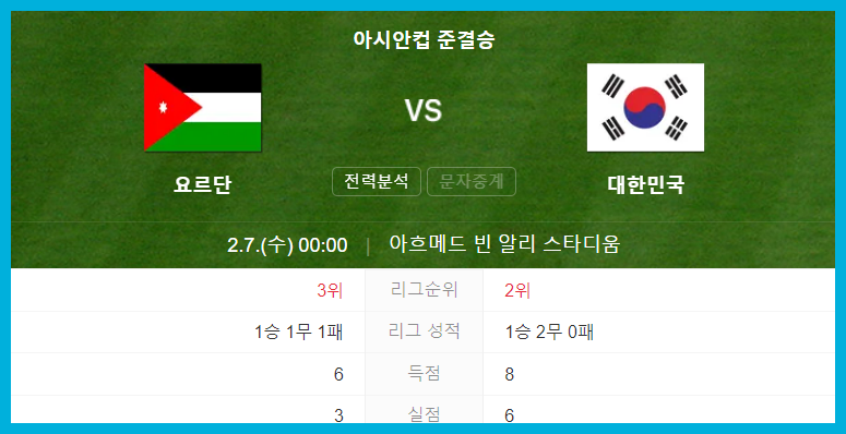 -대한민국이 4강 요르단의 사기를 꺾기 위해서는 전반 선제골이 꼭 필요합니다.