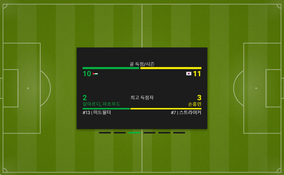 -표에서 보듯이 대한민국 11골 / 요르단 10골 큰 차이가 없습니다.