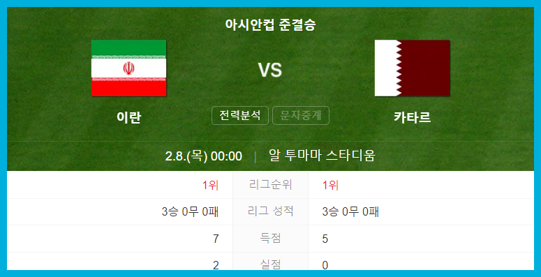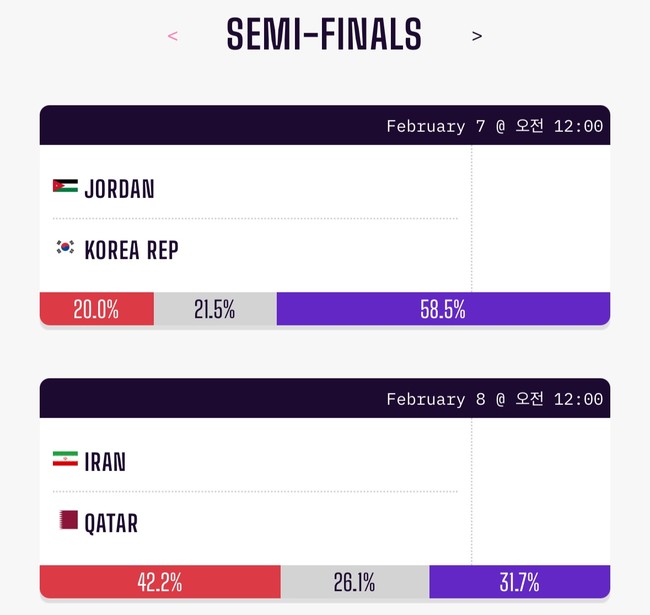 자랑스럽게도 대한민국은 카타르 아시안컵 4강에 진출되어 있고