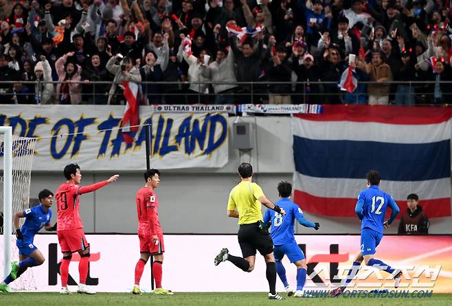 태국의 촘촘한 수비라인을 뚫지 못하며 홈에서 태국에게 1:1 무승부를 거뒀습니다.